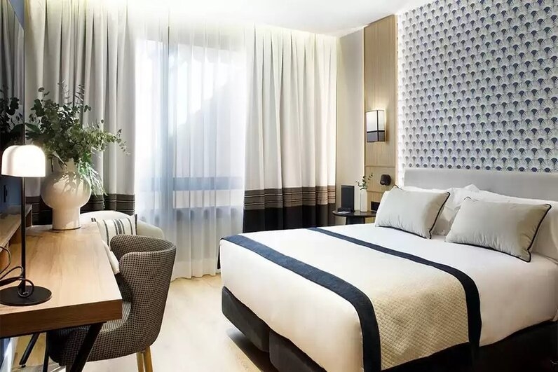 The original Barcelona 505 restaurant awaits with a market menu and a special wine menu. The restaurant is open seven days a week from 1.00 pm to 11.00 pm. There is also a bar lounge, a 24-hour fitness center, a snack bar/deli, and a terrace. The outdor poool let you enjoy a relaxed dip while you take in the views of Barcelona. The hotel has three large rooms for organizing all kinds of events.