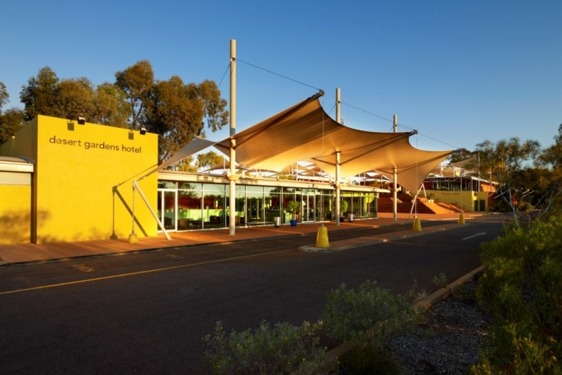 A magnificent sanctuary of towering ghost gums and flowering native shrubs among the red dunes, Voyages Desert Gardens is a welcoming hotel. Diverse accommodation options include shaded poolside rooms or deluxe rooms with stunning views of Uluru. Located centrally to all resort and touring facilities, you can relax in the comfort of your own private balcony or courtyard, or unwind in the hotel's pool, sipping cocktails from the Bunya bar. It's only a short stroll to the resort's numerous lookouts, where you can view what is arguably Australia's best sunset, with the spectacular play of colors across the face of Uluru and the surrounding desert. Once the sun has set, dine at Arnguli Grill and savor an a la carte flame grilled menu.