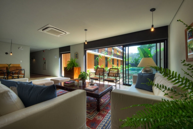 Located in the historic center of Manaus, just a few steps from the Amazon Theater, the Hotel counts on 30 exclusive apartments—all facing an indoor garden and a natural stone pool.